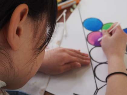 パスで塗り込み、綿棒を使って、色と色のグラデーションを作りました。