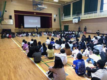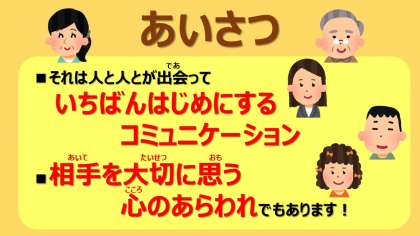 月曜日の朝は、全校朝会があり、朝登校したらすぐに準備をして、体育館か運動場に全員が集まります。進級の話と共に、今日は、「あいさつ」について話をしました。