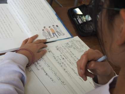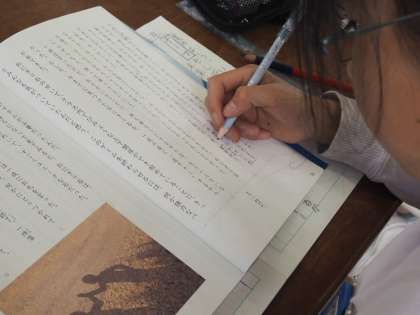 今日は、はじめに題名から物語の内容を想像しました。その後、音声にる朗読を聞き、最後に初発の感想を書きました。
