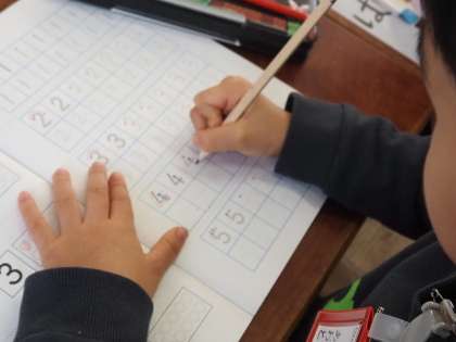 今日は、「4」(し)の数です。4つの数を数える、数字を書く学習をしました。