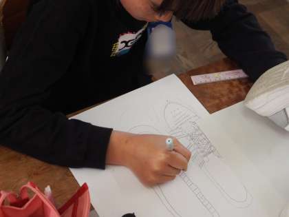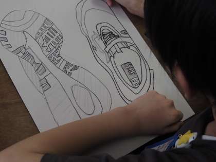 今日は、自分のスニーカーをスケッチしました。曲がった線や直線等、スニーカーにはいろいろな線や模様があり、一つ一つ丁寧に仕上げていきました。