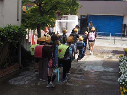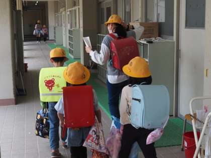 緊急下校時は、基本保護者の方によるお迎えとなりますが、分団会議は近所に住んでいる子どもたちの顔を覚え合う意味もあります。