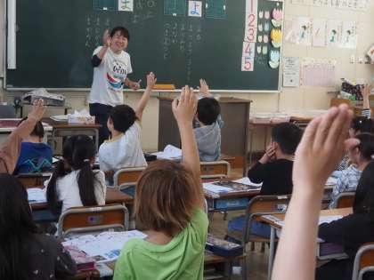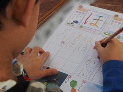今日学習する文字が「よ」のときは、よる、よっと等のように「よ」のつくことばを発表しました。 そのあと、書き方練習帳に、書いて覚えました。