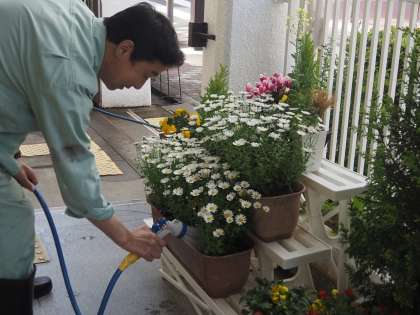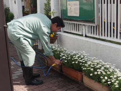 本校でも黄色や白のきれいな花が咲いています。新入生や進級した子どもたち、来校された皆様がほっとするように、学校では管理作業員さんが植栽環境を整えています。
