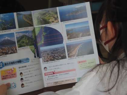 今日は、教科書の写真資料から、日本には様々な地形があることを学習し、関心を高めるようにしました。