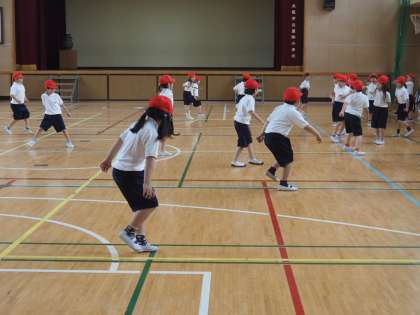 1年生の体育は、2つの学級が、それぞれ運動場と体育館で学習しました。