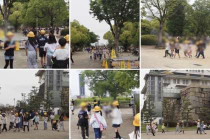 午後から雨ということでしたが、まずは、楽しみな遠足、大阪城公園へ出発です。