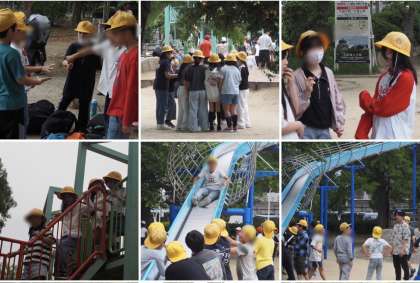 どこの小学校も同じように、急な雨に備えて2校が遊びに来ていました。