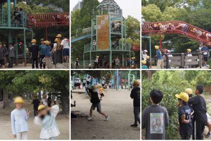 みんな仲良く遊びました。鬼ごっこや遊具、みんな汗をいっぱいかきました。適宜、水分も補給しました。