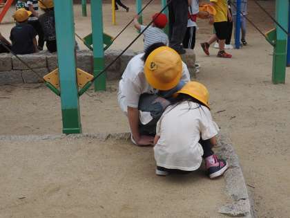 遊具がメインの遊び場ですが、1年生の願いを聞いて、6年生はいろんな遊びをしてくれました。