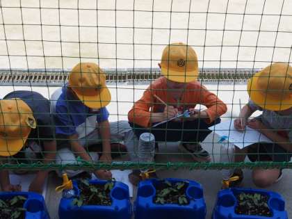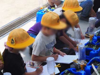1年は、生活科の時間に、アサガオの成長の観察を記録しました。