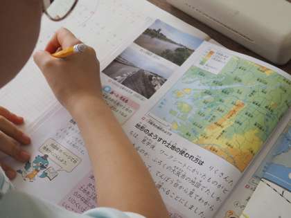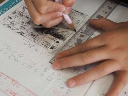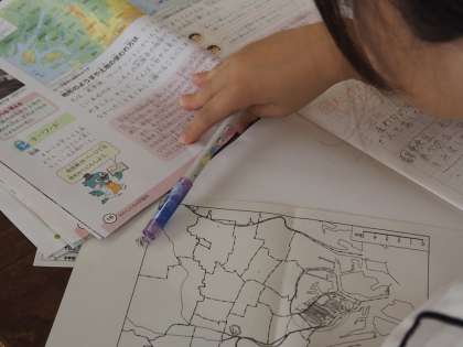3年の社会は、「地形の様子や土地の使われ方」の学習です。副読本『わたしたちの大阪』P18の地形図を見て、大阪市の中で高い土地や低い土地について調べました。自分たちの住んでいる港区は低い土地であることが分かりました。
