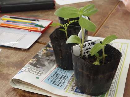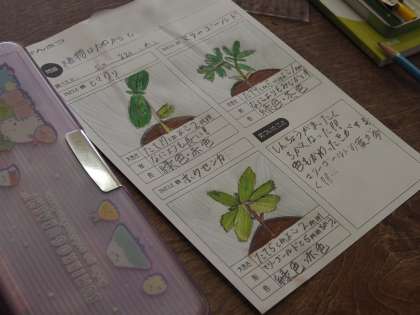 今日は、成長の様子を記録しました。毎日、植物に水やりなどの世話をして関心を持っています。