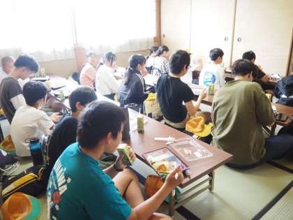 お昼ごはんは、宗陶苑の民家の中で食べました。くつろぎのひとときです。