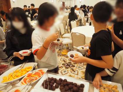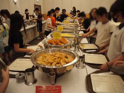 6月4日 修学旅行19 公開日 2025/06/04 更新日 2025/06/04 お知らせ いよいよ夕食。ビュッフェスタイルです。 メインディッシュにサラダ、フルーツ、そしてジュース。自分の食べたいものを選びました。 いいね(0)