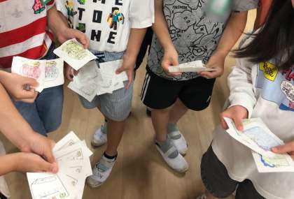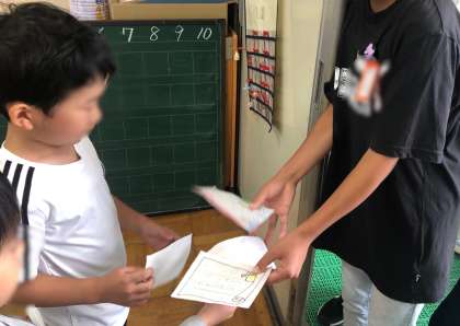 今日の朝の会の時間は、ペア学年同士のいいところ見つけです。1年と6年、2年と4年、3年と5年です。学級の友だちとのいいところ見つけだけでなく、ペア遠足等でなかよしになった異学年との交流も大切にしています。互いにいいところを見つけ、伝え合うことで、互いに認め合い、自尊感情が高まっていくことを願っています。