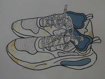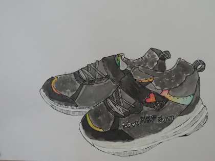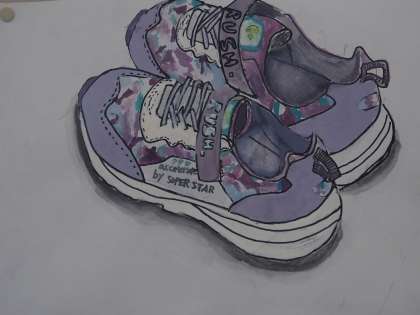 5年の図画工作ではマイシューズを描きました。自分のシューズをじっくりと見て描きあげています。上手に描くことができました。