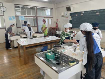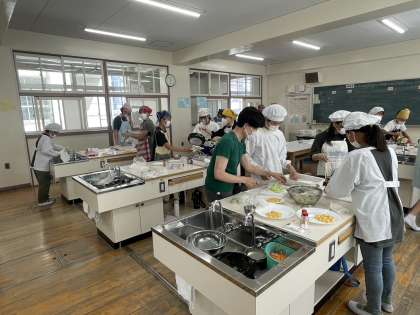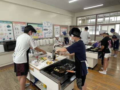 6年の家庭科は調理実習です。野菜炒めとスクランブルエッグでした。美味しくできたかな?
