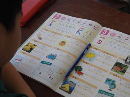 3年の英語活動では、K(か、き、く、け、こ)の学習です。一つひとつ学んでいます。