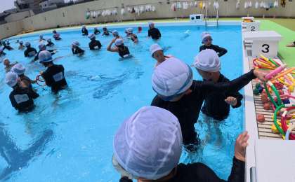 1年は、生活科の水あそびに引き続いて、プール学習です。元気いっぱいの子どもたち。宝さがしも楽しかったです。