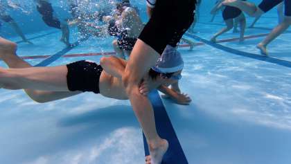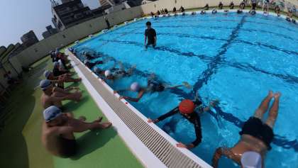 水慣れやウォーミングアップのあと、後半の学習は、クロールや平泳ぎを泳力別に練習しました。