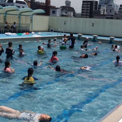 本校では、夏に多くなる海や川、湖等での「水の事故」に備える意味で、3年生以上の児童を対象に「着衣泳」を行っています。服を着たまま水に入る感覚を体験し、体を浮かせる練習をすることで、万一の時に少しでも自分の命を守ることができるようにすることが目的です。