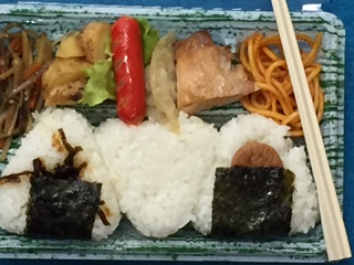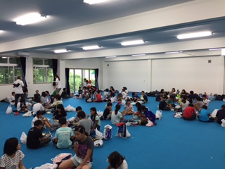 天気が良ければ、高原で食べる予定でしたが、あいにくの雨なので、宿舎の中で食べています。