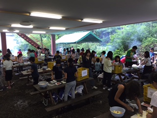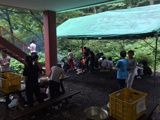 火をおこす係、お米を洗う係、カレーのルーを作る係に別れてカレー作りです。
