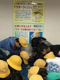 常設になったふれあいタッチング水槽では、ドクターフィッシュに吸いつかれたり、エイをなでたりできて、大興奮でした。