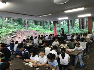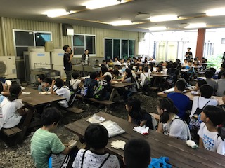 ウッドチップを磨いて世界に一つしかないキーホルダーを作っています。