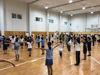 子ども達は元気に起き出し、体育館で朝の集いをしました。