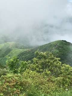 霧の中を歩き、藪の中を歩いて鉢伏山の頂上に到着しました。