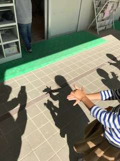 1年生の教室の前では早速子ども達が影絵で遊んでいました。