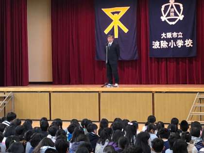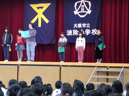長かった2学期もついに最終日。講堂で終業式が行われました。全員で大阪市歌を歌ったあと、校長先生からは、メジャーリーガーとなる大谷選手や先日宇宙ステーションへ向かった宇宙飛行士の金井さんを例にしながら、夢を持つことと、その夢へ向かって努力することの大切さについてのお話がありました。