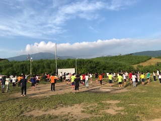 ラジオ体操をして、眠気も吹き飛ばしました。