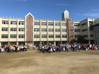8時27分の予鈴でみんなが集まって来て、集会が始まる30分にはほとんどの子どもたちが集まっています。これも波除小学校の良い伝統です。