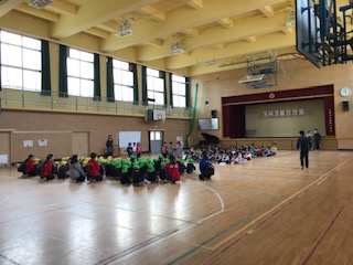 1年生が波除学園、安治川保育園の5歳児を招いて学校を楽しんでもらうイベント「にこにこランド」を開催しています。