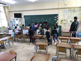 今年は遊んでもらうだけではなく、学校の中を案内したり、教室での生活を体験してもらったりもしています。