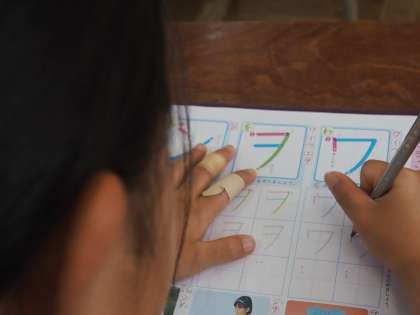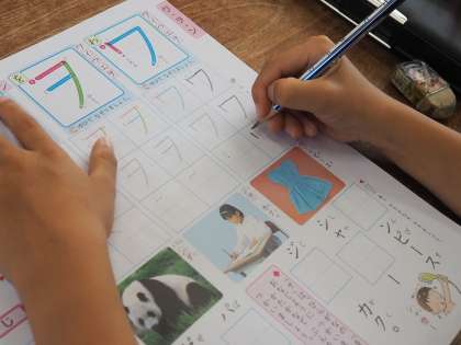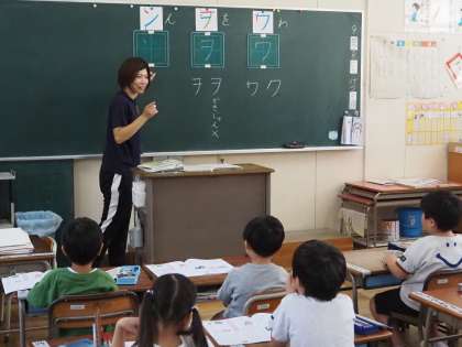 1年生の教室では、カタカナの学習をしていました。