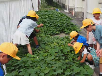 今日は、生活科の学習の時間に学習園へ出かけ、サツマイモを植えている学習園の雑草抜きをしました。収穫のときに、大きく育っていることを願っています。