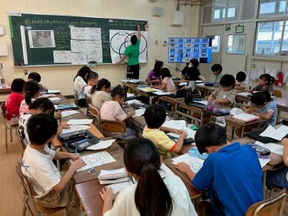 今日は、前の時間に調べた学校にある消防施設・設備について、それぞれがどのような役割があるのか、「消す」「にげる」「防ぐ」の3つに分類しました。