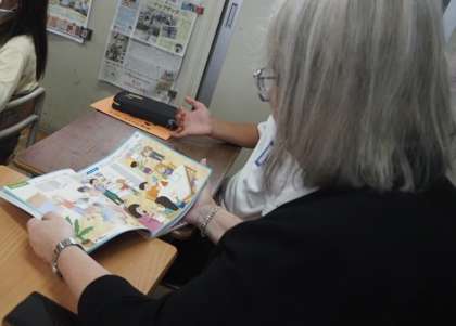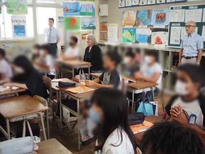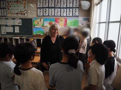 5年生の英語の授業に参加し、子どもたちとも会話をしました。