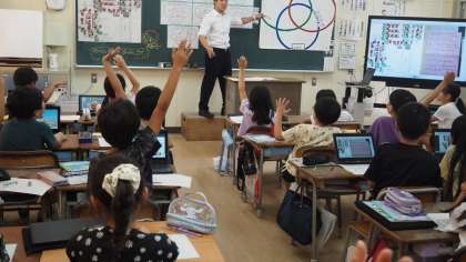 学校にある消防施設を調べ、その役割を考えました。子どもたちが活発に考えを発表したり友だちと話し合ったりしました。