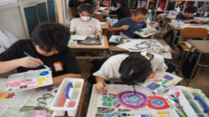 今日は、水彩絵の具で、色を着けていきました。花火の色をきれいに表現しました。