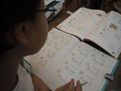 今日は、かけられる数が2けたや3けたの場合のひっ算について復習しました。