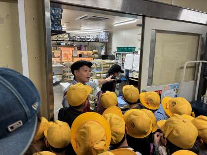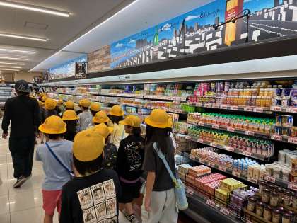 今日は、スーパーマーケットの見学として、ロピアに行きました。お店の中のほか、バックヤードも見学させていただきました。