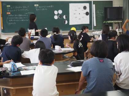 日によって月の形がちがって見えるわけについて、月のモデルの模型を使って考えました。太陽から光を受ける月が、太陽から受ける光とそれによる影によって見え方が変わることを学習しました。