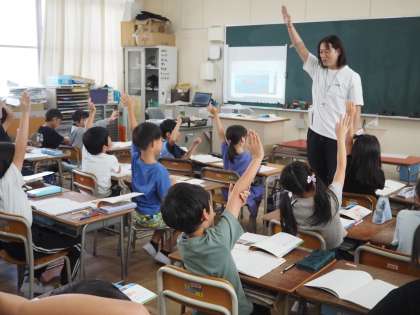 教科書は、「下」巻になり、1年間の学習の折り返しです。今日は、初めの挿絵、川に浮かぶビーバーの巣の写真を見て、子どもたちの関心を高めました。