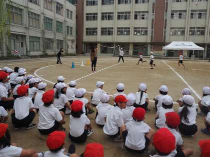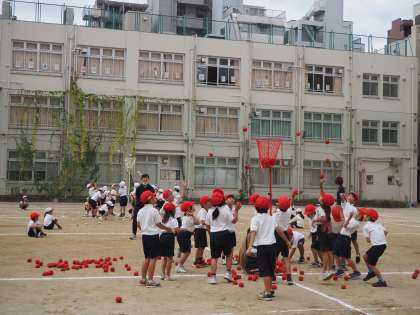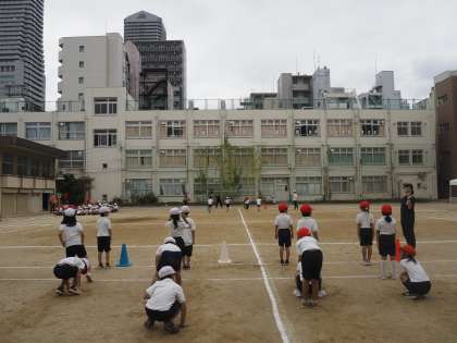 1年の体育は、運動会の練習。週末土曜日の本番に向け、仕上げの段階になりました。