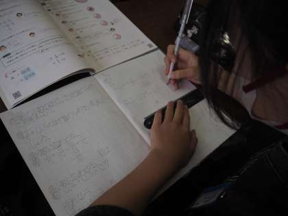 小数を分数に表したり、足される数と足す数を通分したり、仮分数を帯分数に表したりしながら、計算をしました。